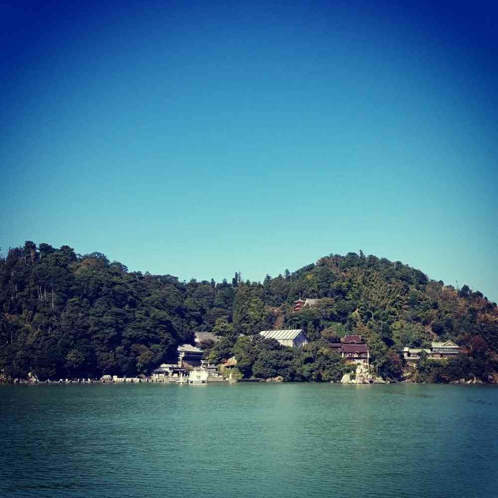 青緑の湖上にポコッと濃い緑の島がインパクトありました。