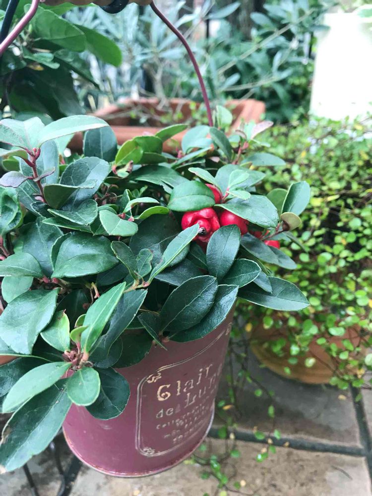 赤い鉢にチェッカーベリー可愛いね(ू•ω•ू❁)ଓ♡⃛