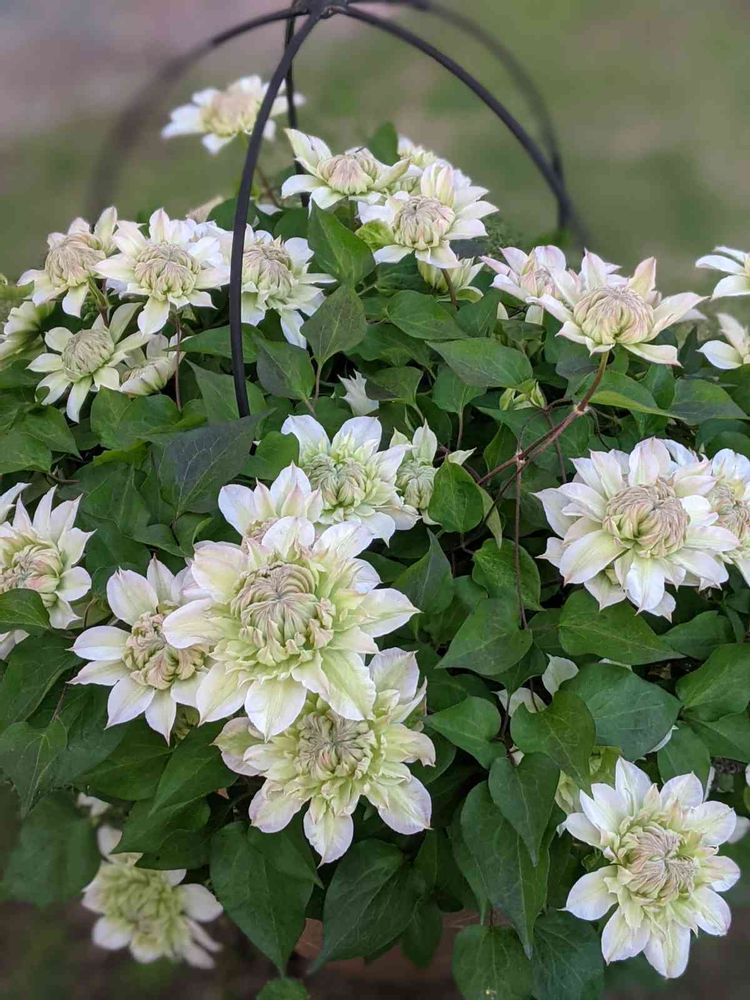 一昨年迎えたのですが、新種らしいです。つるがあちこち伸びないので、こんな風にまとまって咲いてくれましたよ☺️