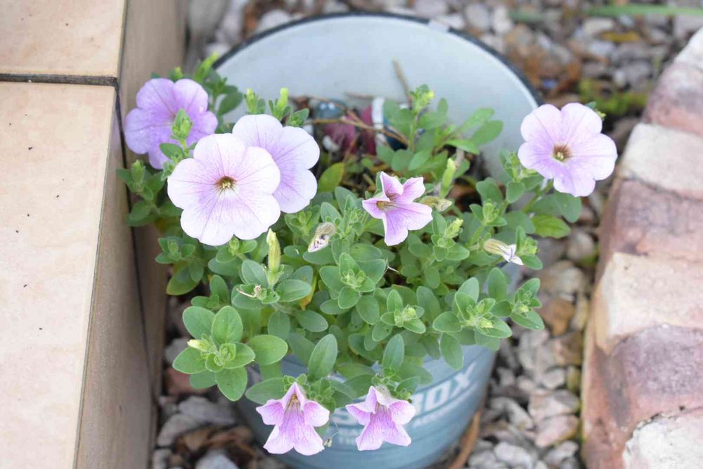 小さな庭,サフィニア,100円ゴミ箱の鉢の投稿画像