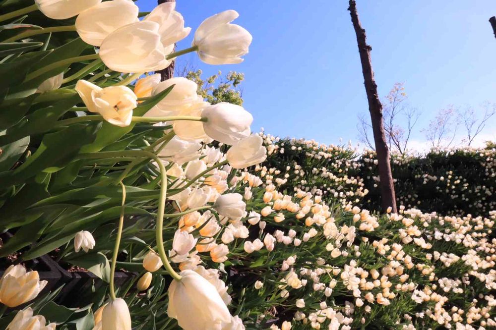 立山アルペンルートの雪の大谷の壁をイメージしてチューリップで表現したそうです✨✨✨