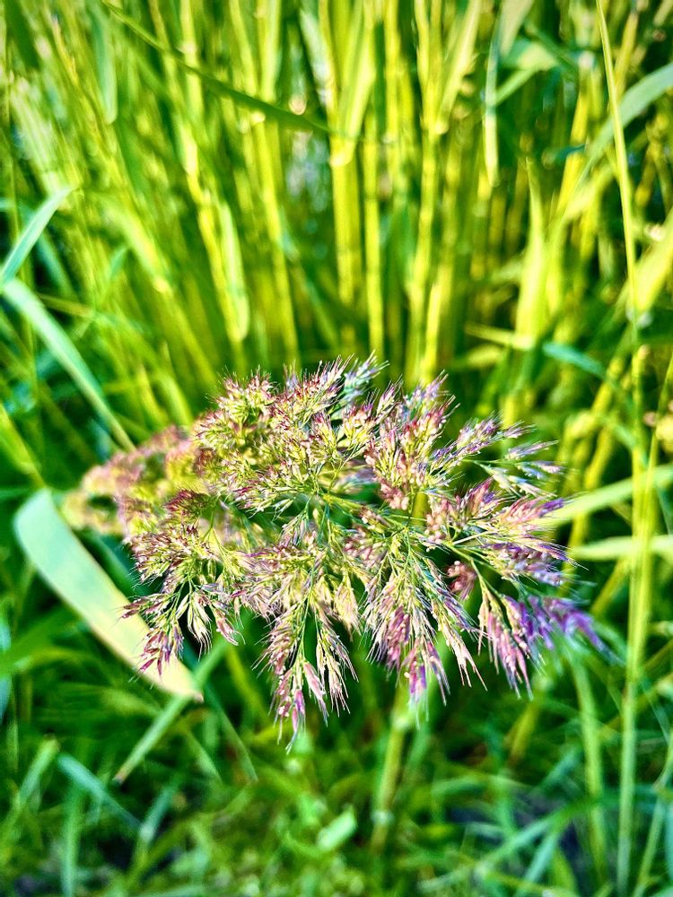 先っ穂が紫がかたホウキが、夕陽を浴びて輝いてました。
