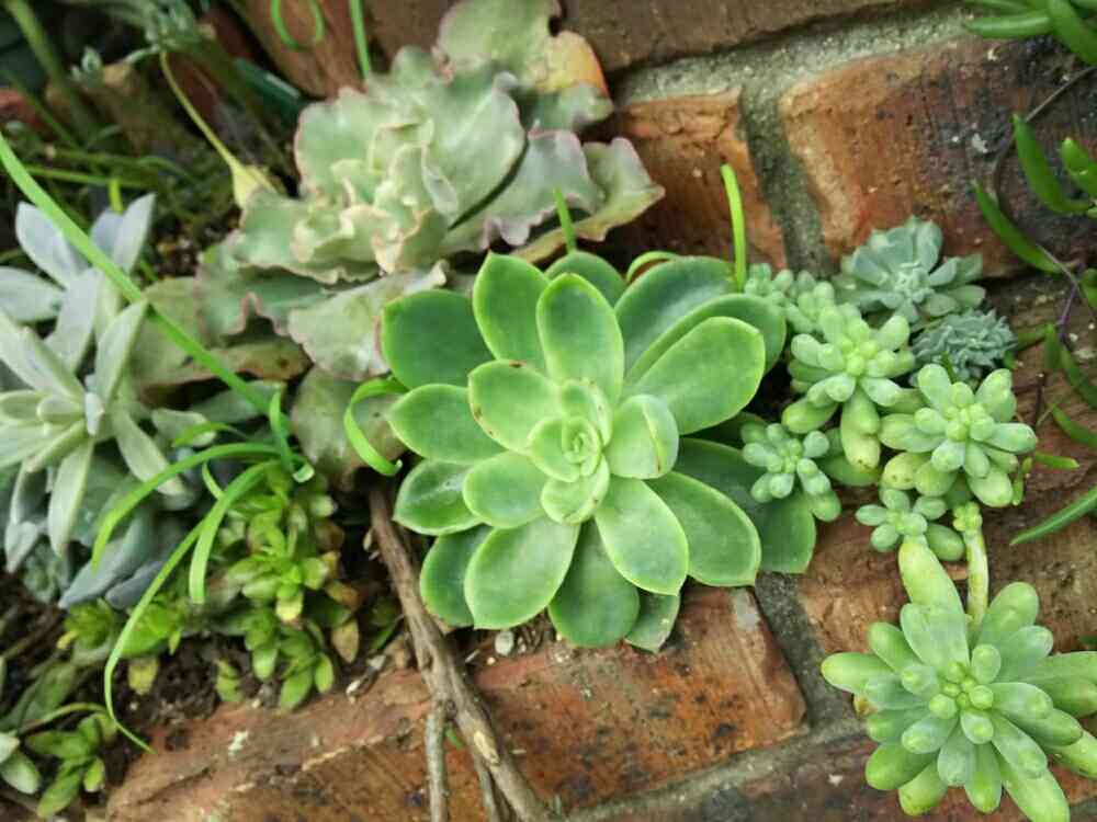 少しだけ雨が止んだ時の多肉花壇🌼🌱🌼