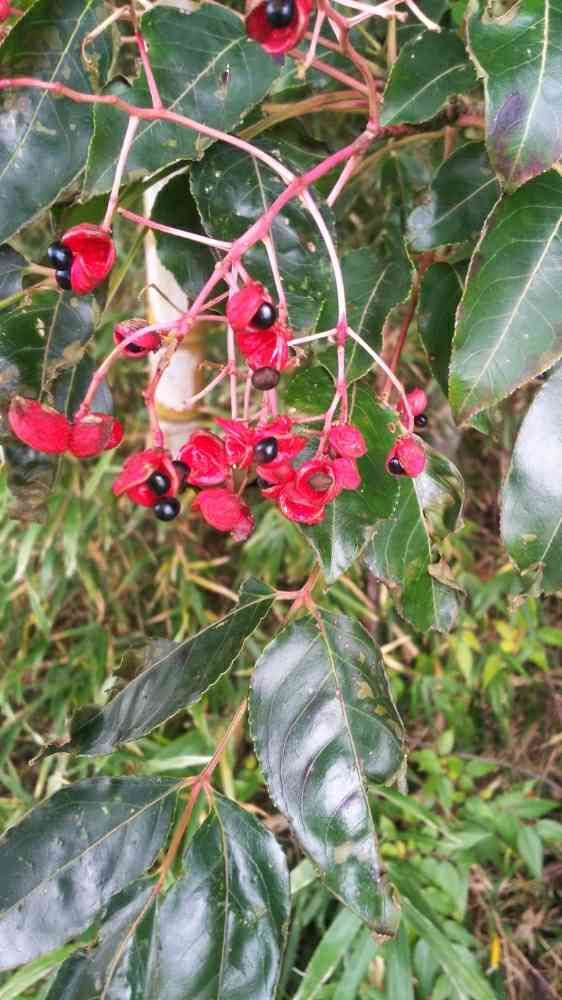 千葉県、袖ヶ浦の山中にて。この赤い実の木、これ何て名前でしょうか?教えてくださいませ~🍀⬅️「ゴンズイ」ですね❗️教えて頂きありがとうございました🎵 別名、キツネノチャブクロ 。花言葉は、一芸に秀でる。です♥️