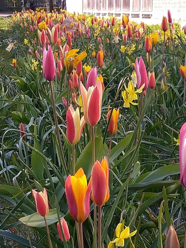 同じチューリップ🌷でも昨日の投稿とは違う子達を。原種クルシアナ系をメインに据えたら、暖色系でも少ししゅっとした雰囲気です🥰