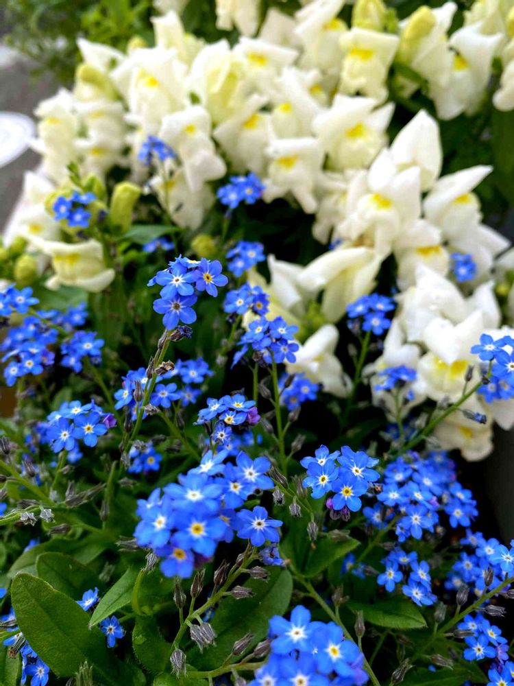 にゃーこ家の「勿忘草と金魚草」2年目でモリモリ咲いています😆💕