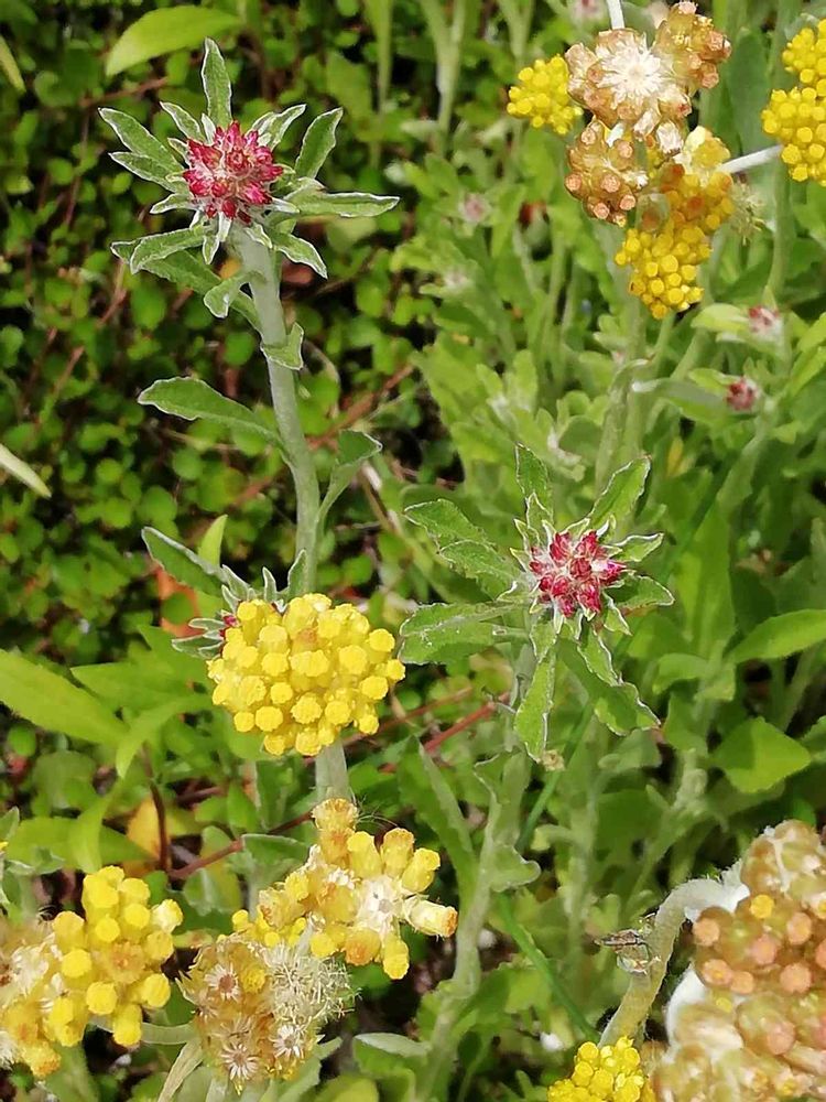 ハハコグサと、ハハコグサに似たピンクの花の野草🎶。