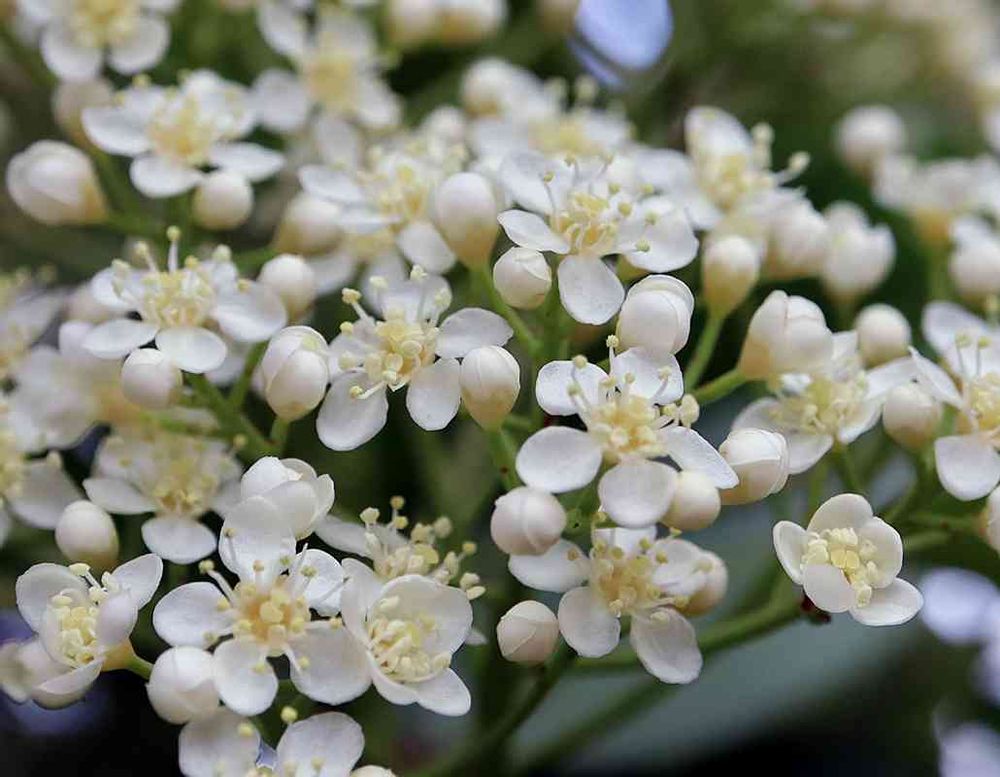 春、枝先に白いたくさんの花が集まった大きめの花序をつけ、遠くからでもよく目立つ。
