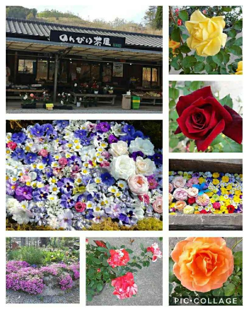 こんにちは👋😃昨日、県内の、長湯温泉の帰り、のんびり茶屋に、立ち寄りました💓主人は、ダリアの、球根購入してる間、薔薇🌹も、綺麗でしたので、店員さんに、許可を、得て、パチリ、薔薇🌹が、綺麗でした。赤は、パパメイアン、オレンジは、レッドマリナ?、黄色は、伊豆の踊子、赤白混じりは、セザンヌ?と、書いてました🌹花手水?綺麗でした。