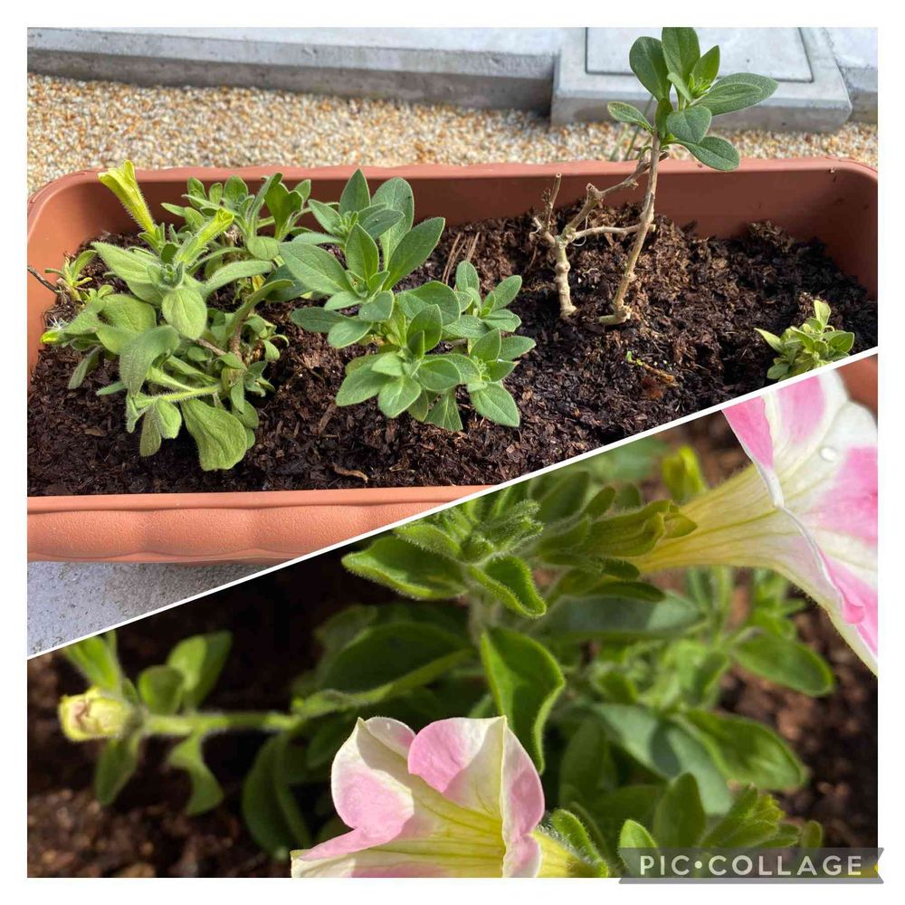 冬越ししたサフィニア、やっと葉っぱが増えてきました。
