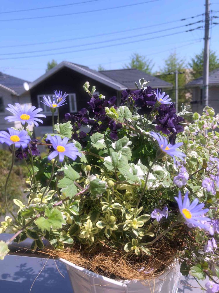 ブルーデージーちゃんの寄せ植えが暴れています😅でも元気でなにより💙💜🤍