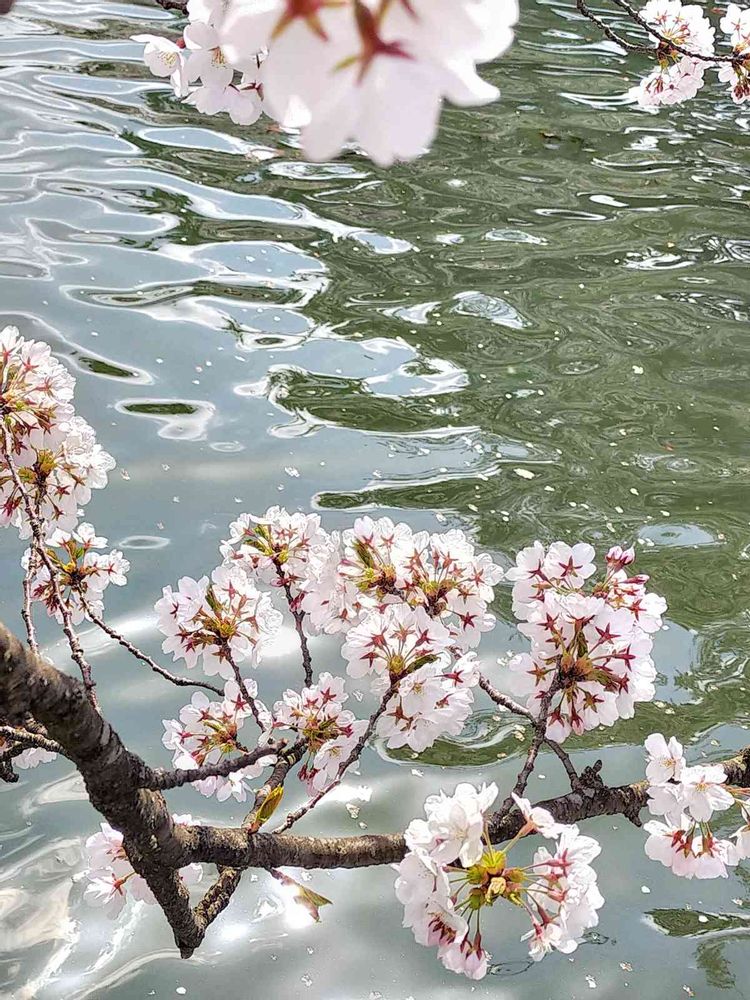 この日は風が強くて桜の枝も水面も大きく揺れてました。キラキラ光るのが綺麗で…なんとか撮れたかしら✨