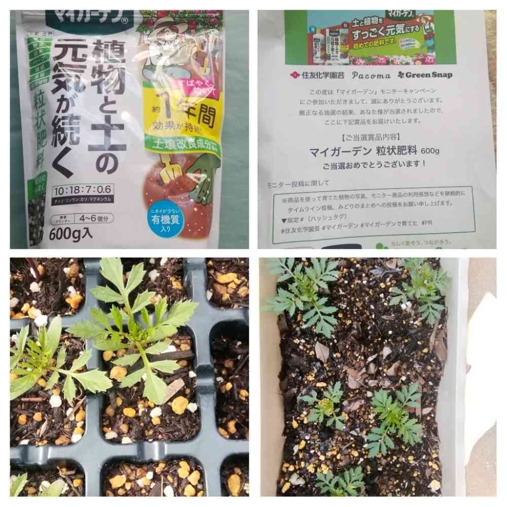 早速種から育てたマリー・ゴールドをプランターに赤玉小粒と腐葉土、住友化学園芸さんの粒状肥料をすき込みました。