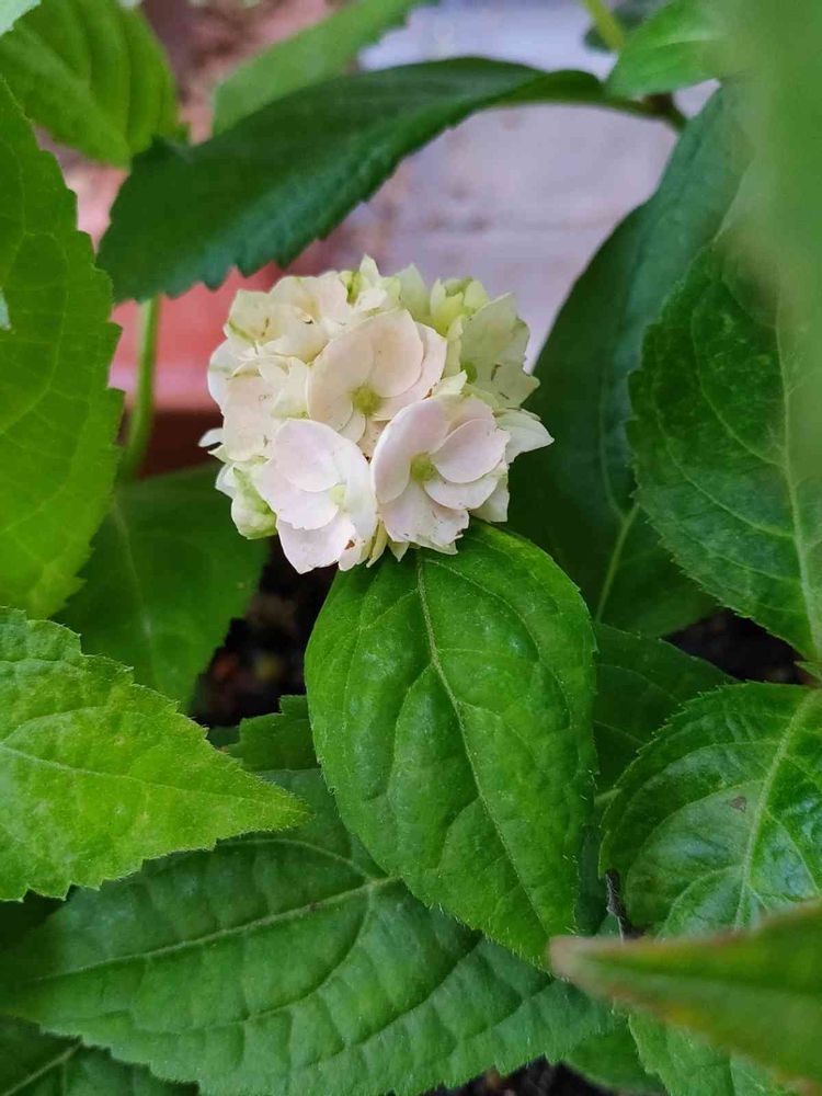 夕活です。伊予獅子手毬、最初の花は白でしたが、3番目の花でようやく薄ピンクになってきました。