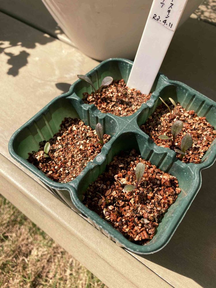 銅葉ダリアの芽が出ました🌱🌱🌱