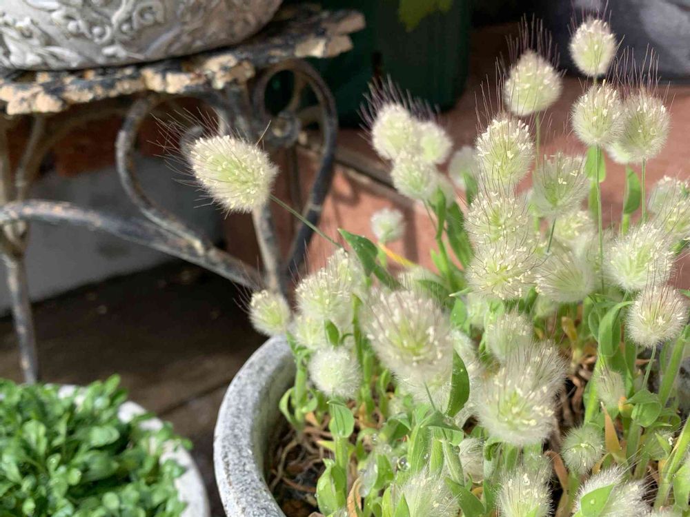 こぼれ種からラグラス(バニーテール)が出てくれました。なんだか小ぶりだけど( ´ᯅ` )