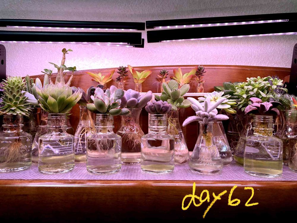 2021/2/21から自室で多肉植物の水耕栽培を始めました! フォロー大歓迎です! 自室は太陽光が一切差さないので、光は植物育成用LEDのみを使っています。 完全な初心者ですがよろしくお願いします!