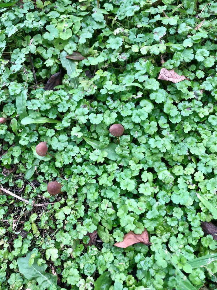 今年はこの「チドメグサ」の間からキノコが出てきてビックリ‼️