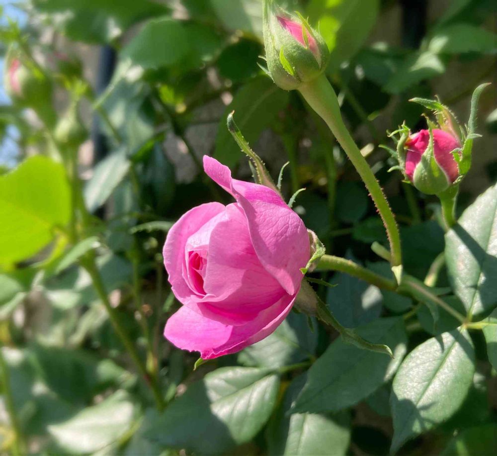 バラが咲き始めましたね〜。オールドローズ、ラレーヌビクトリア。ゆっくり咲いてね〜😌