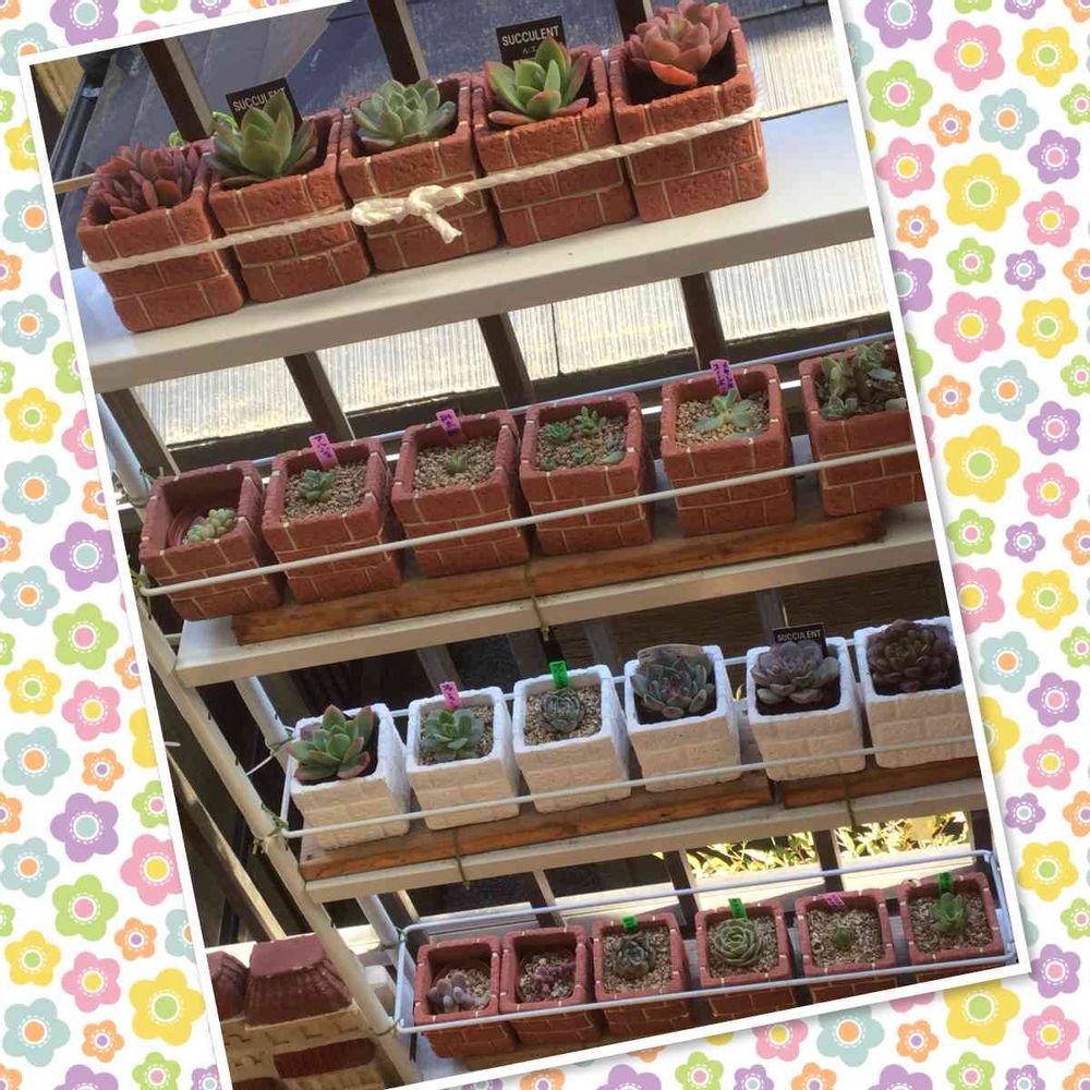 先程投稿のメル買った子達、シルクのレンガ鉢に並べました〜(๑˃̵ᴗ˂̵)💕💗アップ画像、連投します🙏