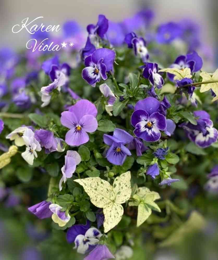 おはようございます🌱 濃い紫のビオラさんと斑入りのアイビーの組み合わせ、可愛い❤︎