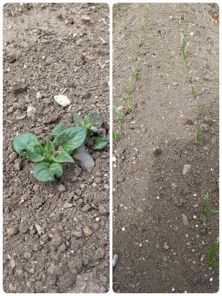 畑のジャガイモの芽と去年の秋にやりたくて出来なかったほうれん草の芽が出てきてます✨🤗