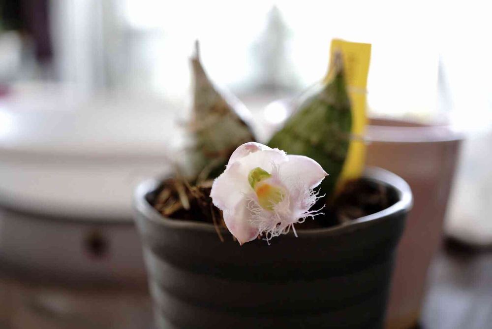 今年の蘭展で購入して、蕾が2つありましたご、ひとつは落ちて、残りの蕾がようやく咲きました。🌸