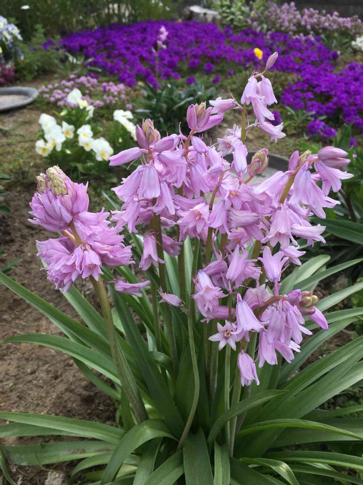 ひとりばえのシラーカンパニュラ。ピンク。小さな花だけど去年より豪華になってるかも😳🌸