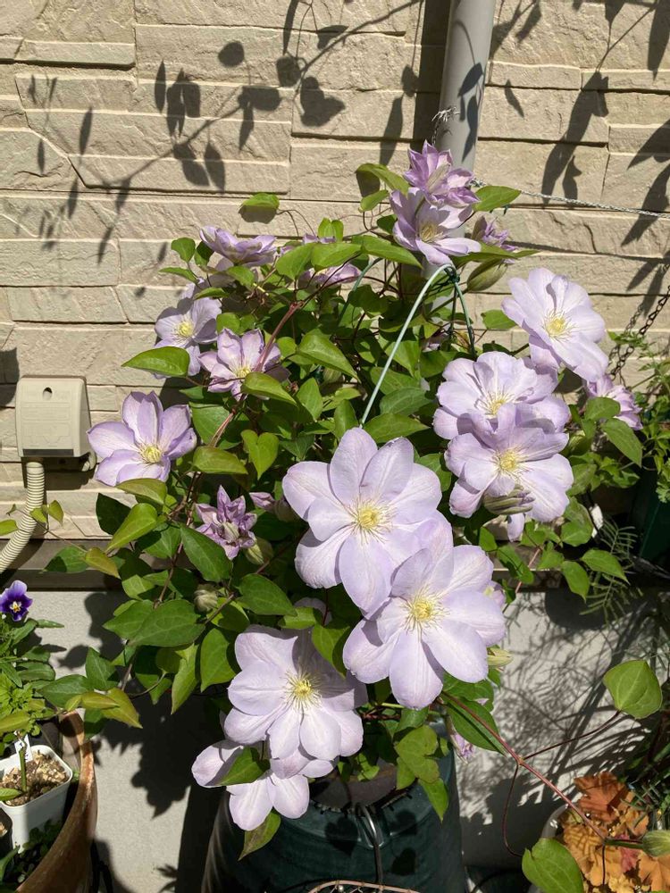 バラと同じ頃咲く大輪系のクレマチス、華やかなんだけど〜、旧枝が多いよね😅鉢植えなんだけど、根っこパンパン💦6号鉢で鉢増しはしたくないので、どーしましょ🙄