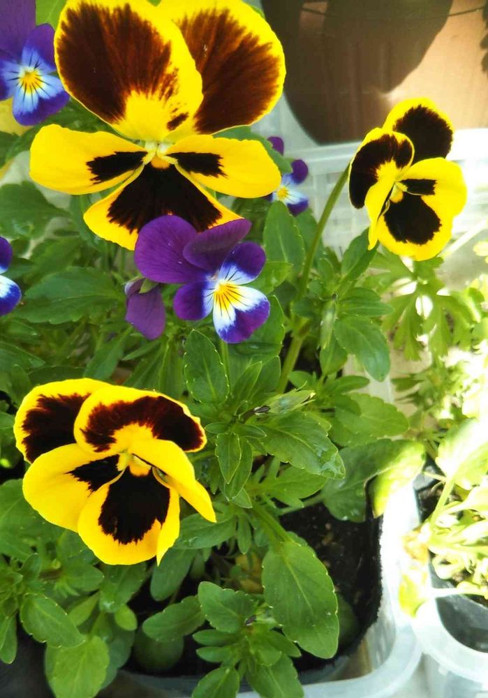 イタリアのパンジー、花が増えました。ビオラと比べるとやはりかなり大きい😳