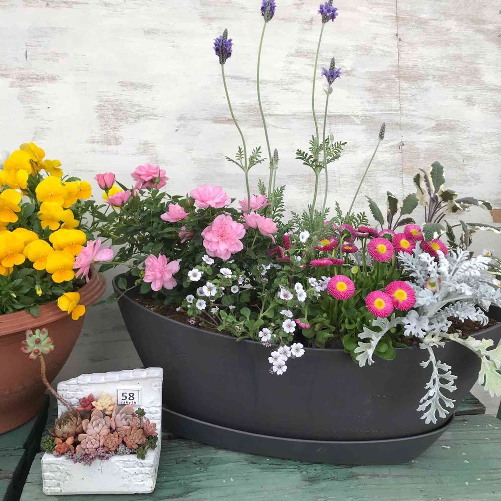 お花の寄せ植えを引き立たせてくれてるようです