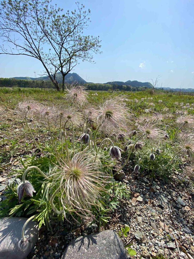 河原にオキナグサの綿毛が、風に揺れてるようで、いい風景ですね💞