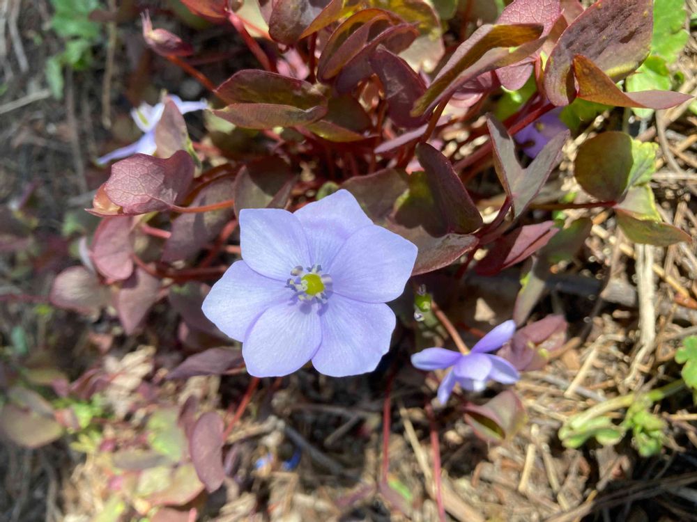 最初、薄紫のハナニラ、かと、思ったんですが、葉っぱが銅葉❔ですよね❗