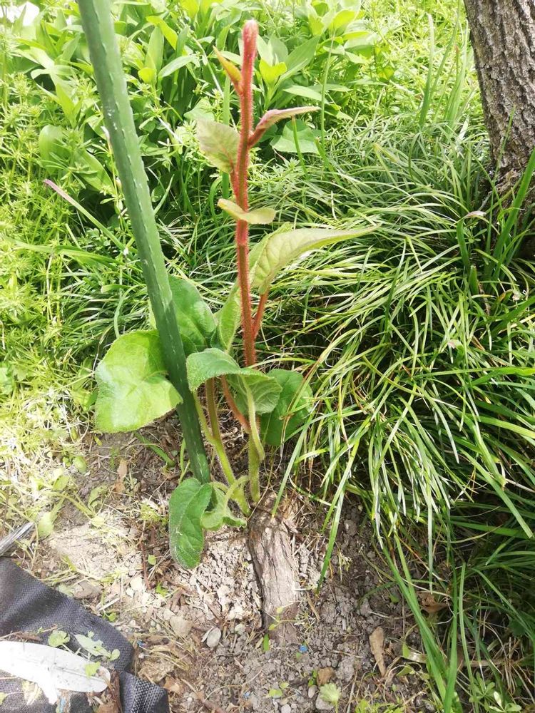 キウイの雄木(たぶんトムリ)をボーと眺めると、倒れて地面を這っている枝から新梢?新芽?が出てきていました〰🤯