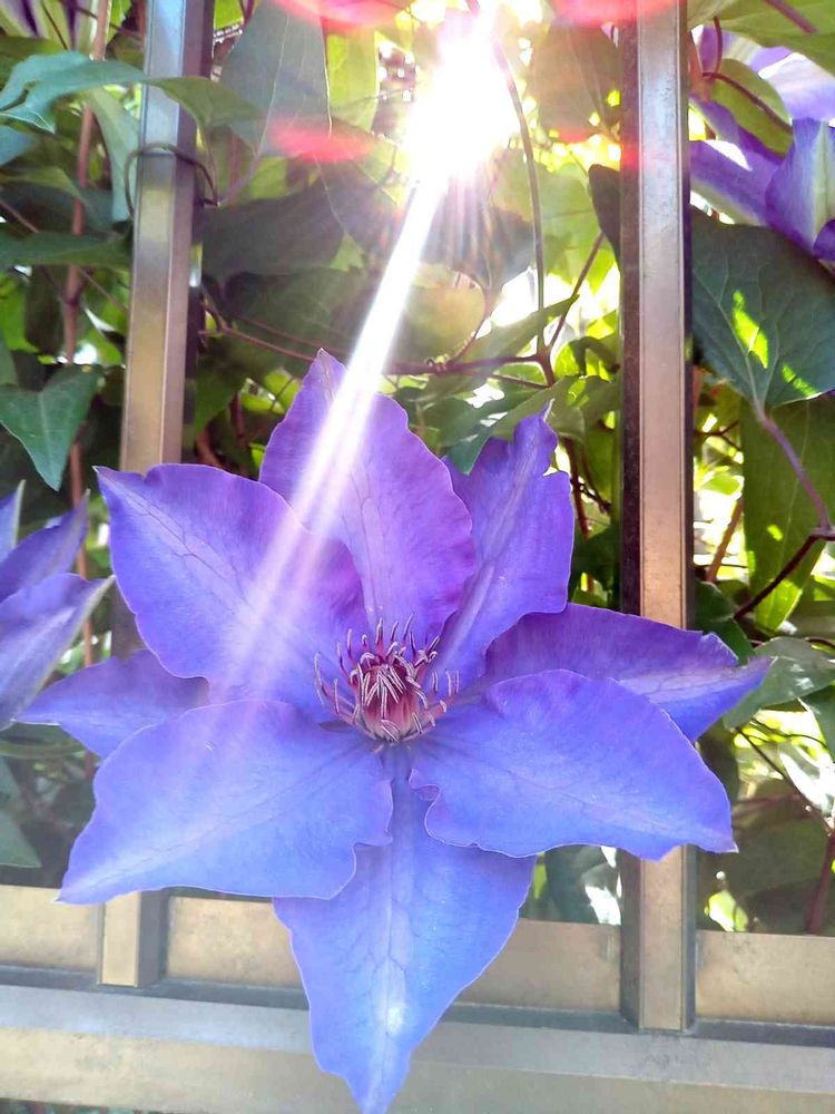 知人宅のクレマチスを、撮っていたら、☀が射しました。