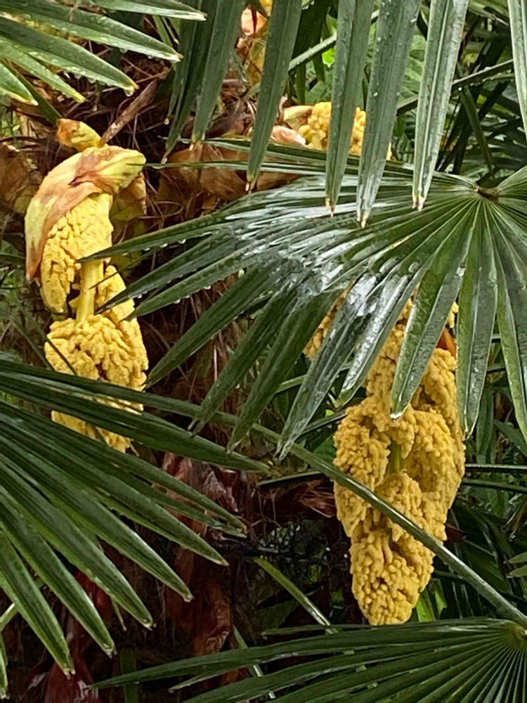 ヤシの仲間のシュロの花ですね〜(^ν^)