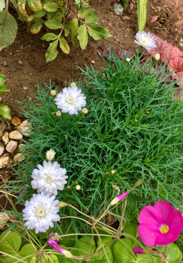 さん😊うちのマーガレット4株中3株は咲きませんよ。葉っぱは元気に茂ってますが。この白いのは今もますます元気に咲いています。