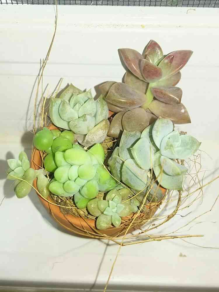 お世話になった方から頂いた多肉ちゃんたちにお家の多肉をひとつくわえましたー🎵