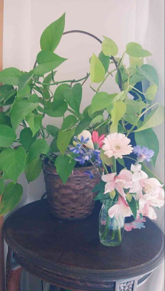 (ちょうど良いサイズがなく、なめこの空き瓶にいけてます😅)