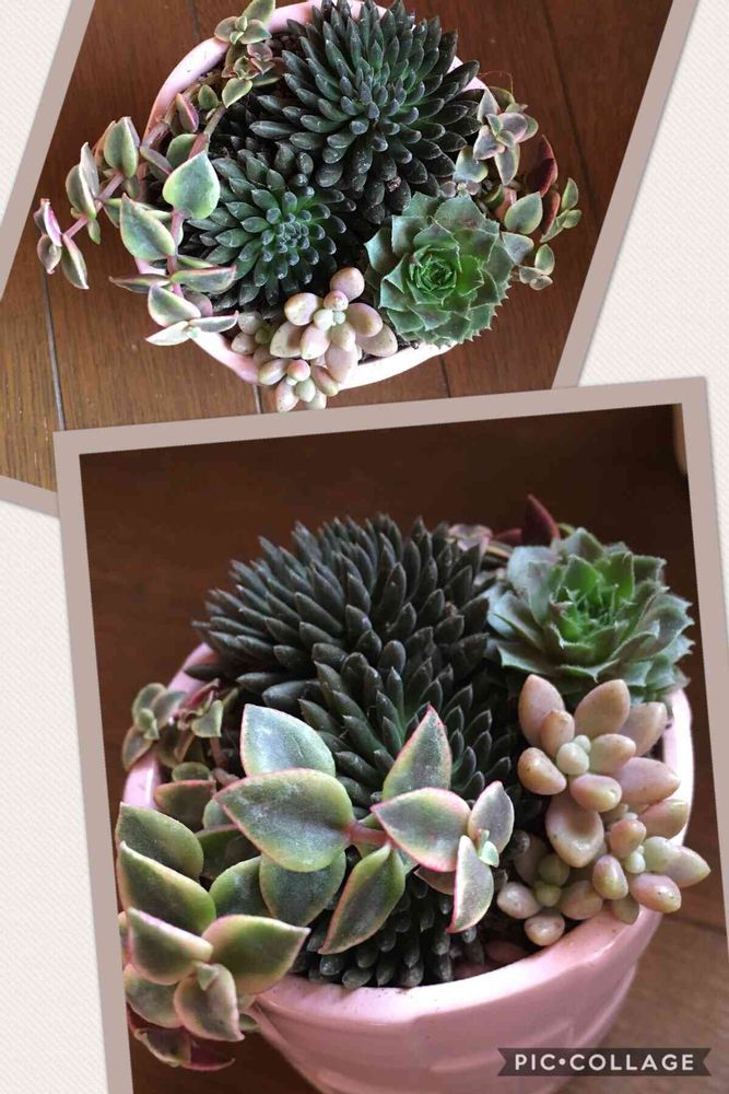 ピンクの鉢で可愛らしい感じをイメージしてたけど、松竹梅に見える😅