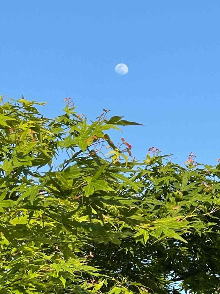 新緑のもみじ💚と昼のお月様🤍♪♪♪