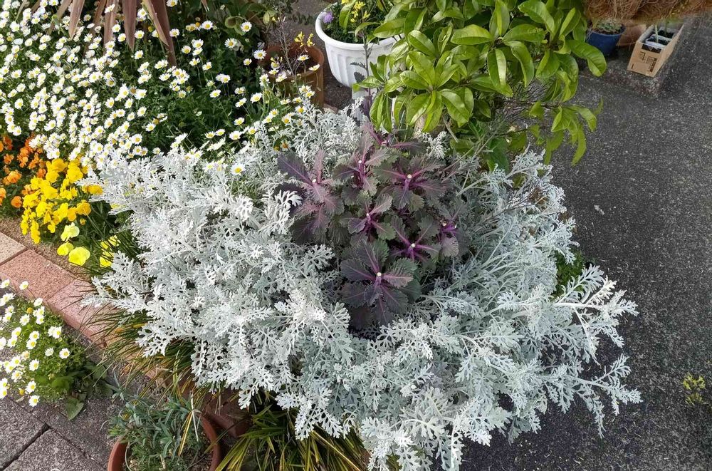 小さな庭,シロタエギク,葉ボタンの投稿画像