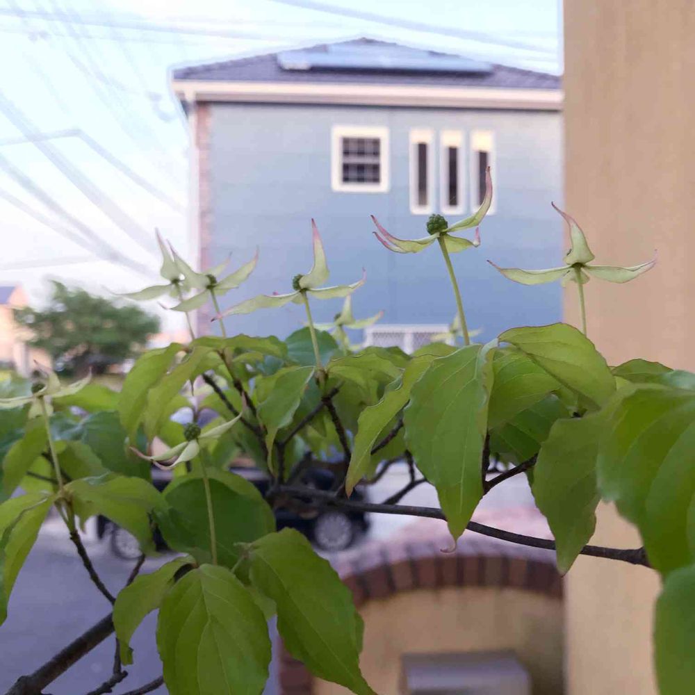 玄関のヤマボウシが咲き始めた🎵