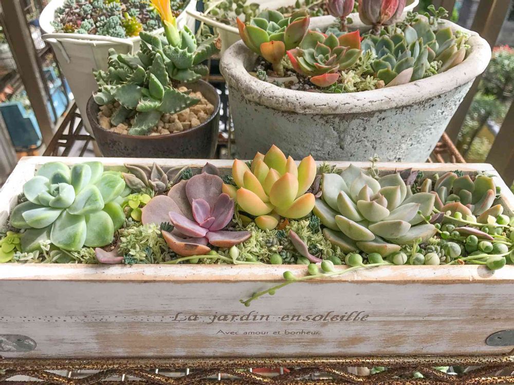それぞれ別の寄せ植え鉢にいた子を合わせたから、いろいろ傾いていたんですよ。