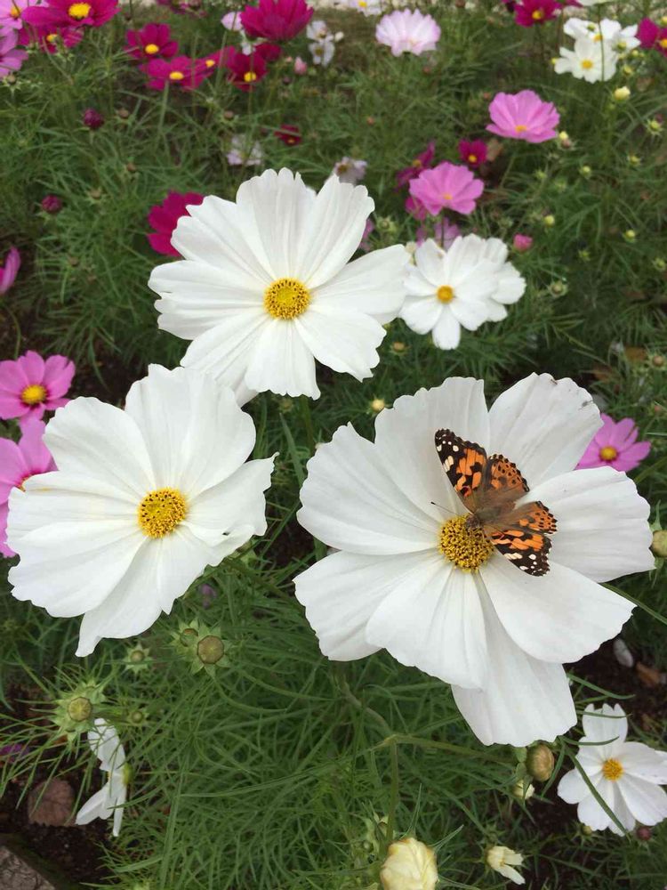 白のコスモスだから、目立ちますよ❤️おチョウさん♡(^.^)