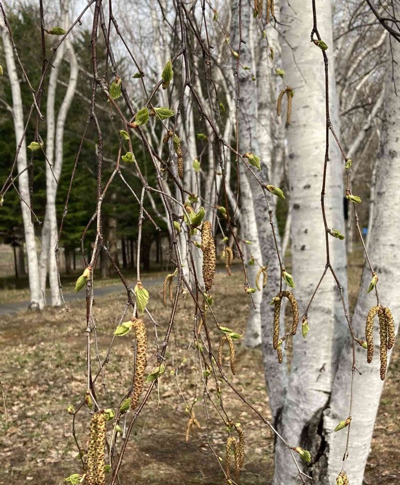 シラカバの花、初めて見ましたが、花粉症が起こるのですね…😱