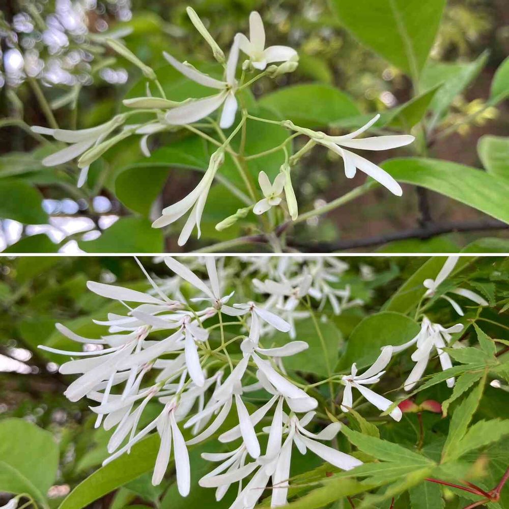 ヒトツバタゴ(一つ葉タゴ)が別名なんだけど、どちらにしてもインパクト有り過ぎなお名前😊 対馬と、東濃と犬山(木曽川流域)しか自生してないレッドデータブックに載っちゃう植物です。でもこれは、鵜沼駅の植樹です。見頃ですよ!