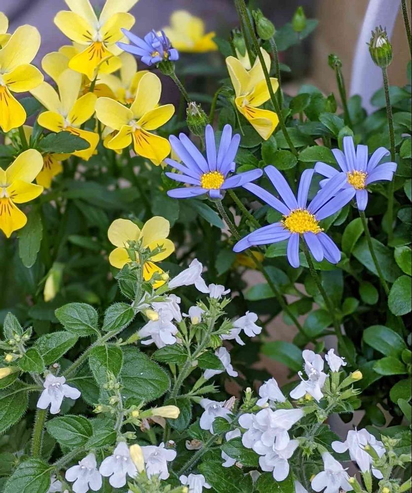 ビオラ💛とブルーデージー💙とカラミンサ🤍