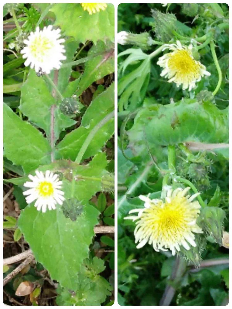 畑の行き帰りに白花ノゲシを探して👀👀…いたら…クリーム色の薄白ノゲシを見つけました‼️