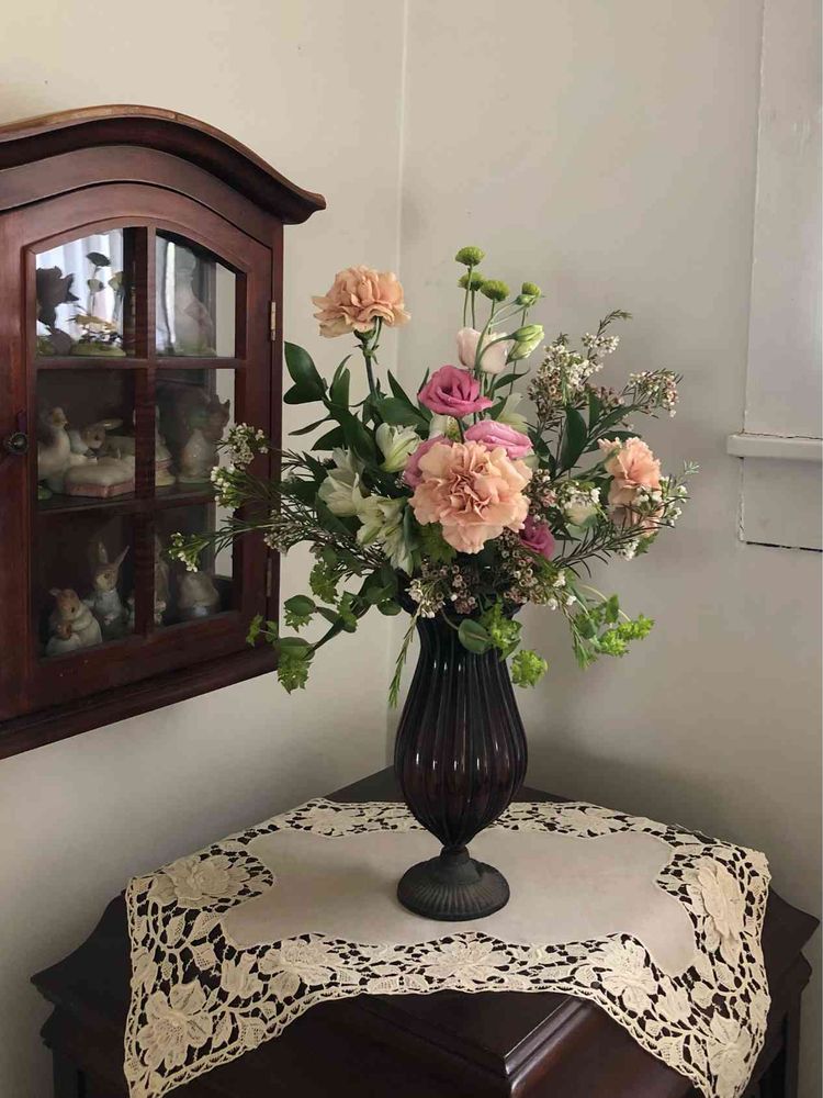 アンティークピンクのカーネーションが手に入りました。洋風仕立てです。